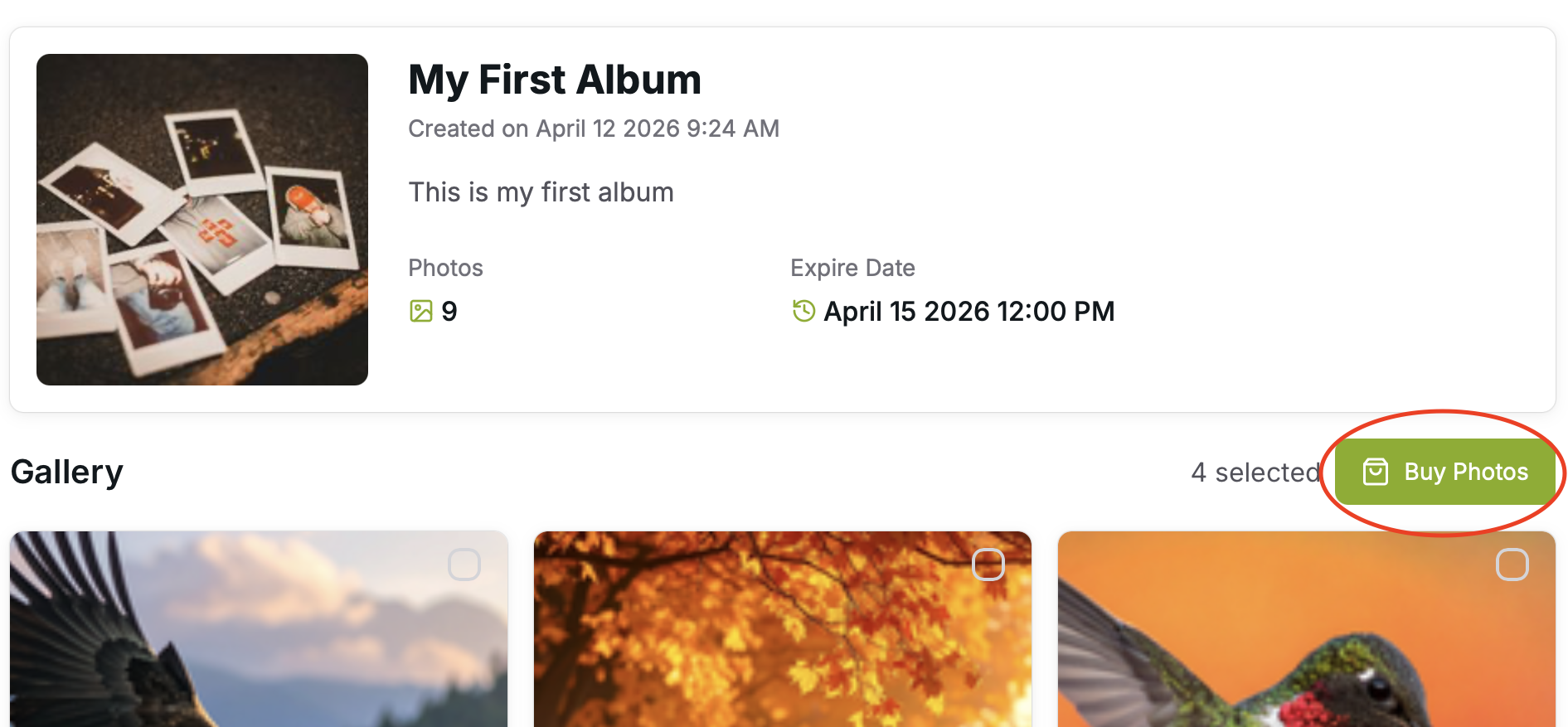Select the photos you want to buy and click on “Buy Photo”