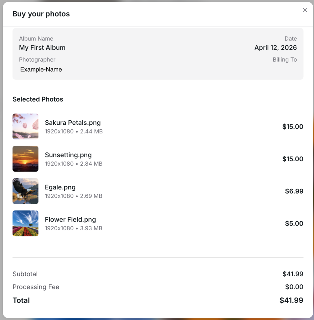 Please follow the payment instructions provided by the photographer to complete the payment directly to photographer.